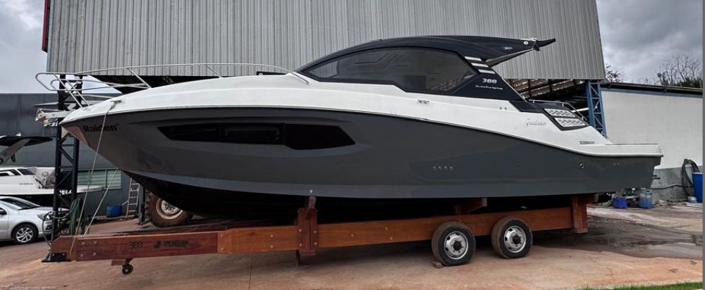 Lancha Focker 388, ano 2024, com parelha de motores Mercruiser 350 Axius com Joystick, e apenas 95 horas de uso, apenas em água doce. Acessórios inclusos: piso em Teka madeira, plataforma (deck beach), televisão, stobag elétrico, luz subaquática, microondas, geladeira, geleira, kit salvatagem, kit enxoval, banqueta de popa, champanheira, GPS 12″ Simrad, sistema de som completo, guincho eletrônico, flap, gerador Onan, ar condicionado, farol elétrico. Acompanha carreta de encalhe trucada. Venha ver de perto!